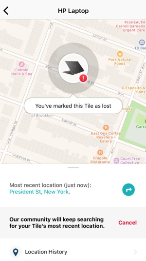 특히 타일의 ‘커뮤니티 찾기(Community Find)’ 기능이 매우 유용하다. 잃어버린 노트북의 범위 안에 분실한 본인이나 다른 타일 사용자가 있게 되면 타일 앱에 알림과 업데이트 된 위치 정보가 나타난다. 노트북을 ‘분실’로 표시하더라도 커뮤니티 찾기 알림만 받을 수 있을 뿐이며, 타일 사용자 모두에게 분실 사실을 알리지는 않는다.